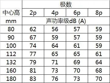 噪聲在實(shí)時(shí)監(jiān)控預(yù)警中由于干擾因素很多,存在較大困難,一般對(duì)電機(jī)在空載狀況下的噪聲進(jìn)行測試,從而分析電機(jī)可能存在的問題,盛華變頻電機(jī)廠家整理上表對(duì)傳統(tǒng)電機(jī)的空載噪聲進(jìn)行了梳理。