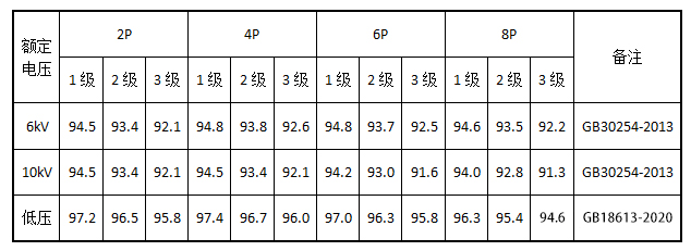在之前的文章中,盛華電機也談過高壓電機和低壓電機的優(yōu)勢比較,對于大功率電機,由于低壓電機制造工藝及成本的局限性,大功率電機更多地選擇高壓電機;功率200kW左右的電機,有低壓電機也有高壓電機,但從兩者效率的能效限定要求比較,很難界定哪種電機更節(jié)能。下表是250kW、不同電壓等級電機的效率限定及能效等級界定值,從表中數(shù)據(jù)看,低壓電機的效率更高一些。