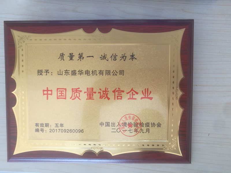 盛華電機公司資質(zhì)榮譽《質(zhì)量誠信企業(yè)》